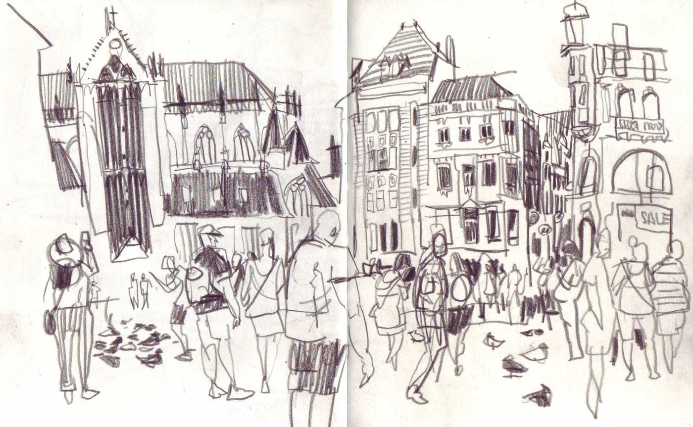 Gebäude, Bäume, Autos, Menschen, Verkehrsschilder... die typische Stadtlandschaft ist visuell komplex und vielfältig. Können wir all diese Details in einer Zeichnung erfassen? Zum Glück müssen wir das nicht. Durch Reduktion und Vereinfachung können wir die Geschichte erzählen, die für uns wirklich wichtig ist. Ziel dieses Workshops ist es, unsere Unsicherheiten beim Zeichnen komplexer Szenen zu überwinden. Wir üben verschiedene Kompositionsregeln und lernen, die visuellen Elemente zu identifizieren, die die wichtigsten Informationen mit der geringsten Anzahl von Linien einbringen. Mehrere kurze Übungen werden uns erlauben, den Ort aus verschiedenen Blickwinkeln zu erkunden.