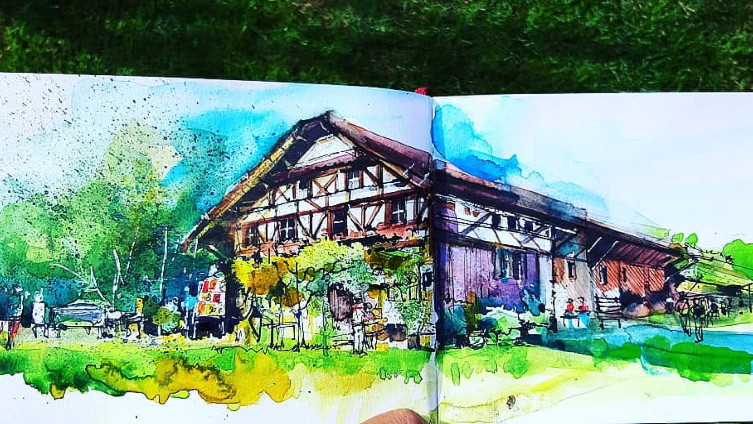 Brindarica Bose, is an Indian by birth and now a Swiss citizen. She works part-time in the publishing industry, and as an art teacher in Migros Klubschule. For her, urbansketching is like storytelling. She published a sketching book "Sketching Diaries" with four other Swiss artists in 2020. Her artworks are colourful and although watercolours are her first love, she loves mixing pencils, pens, crayons and anything that she can lay her hands on, while urbansketching. Her style is rather "fast and spontaneous" to capture the essence of a scene.