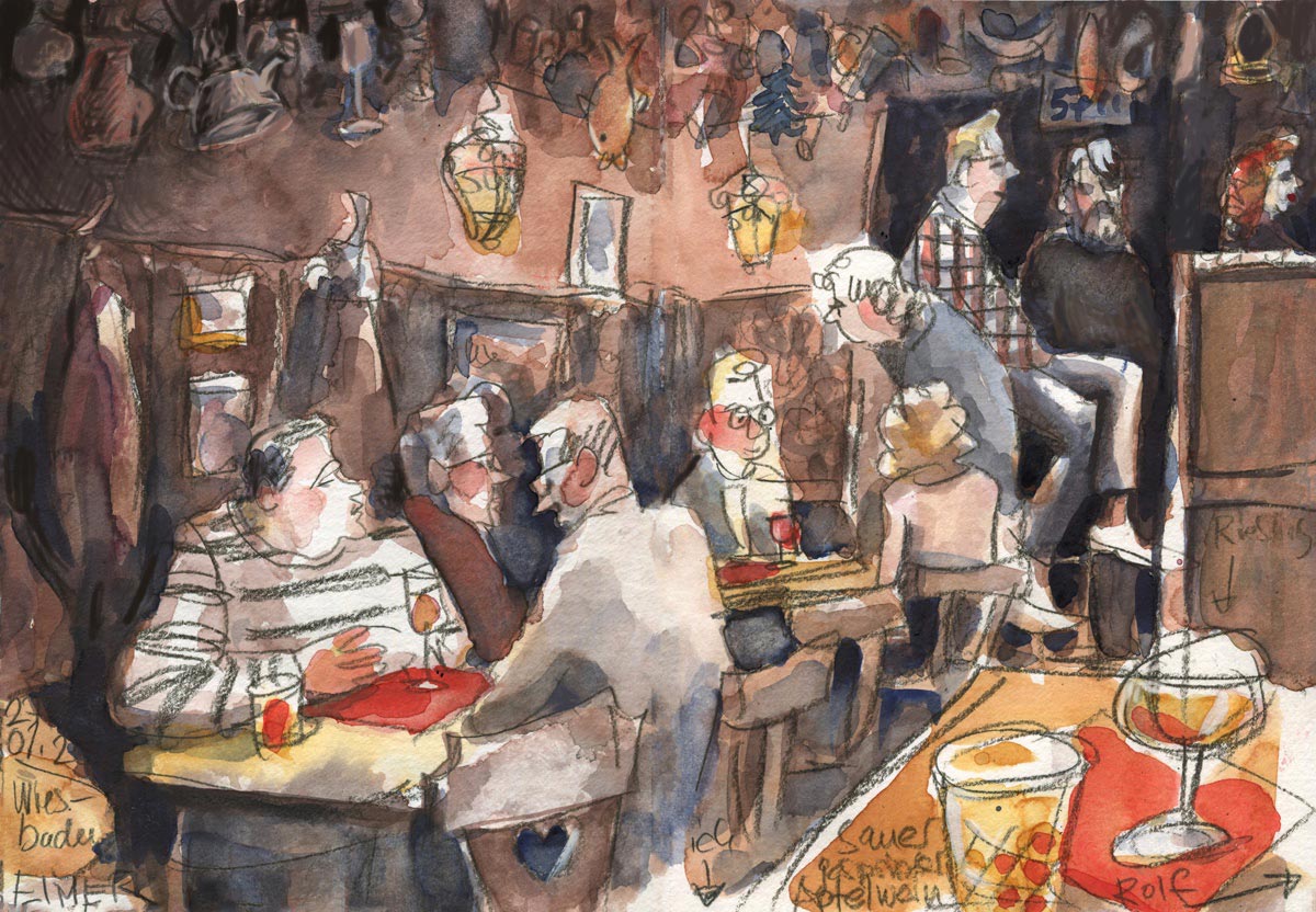 Close observation and empathy with the scene and a humorous look are more important in this workshop than, for example, correct reproduction of perspective or anatomy. The focus is on the observed persons, their relationship to each other, as well as their relationship to the surrounding space in the context of the scene found and to be reproduced.