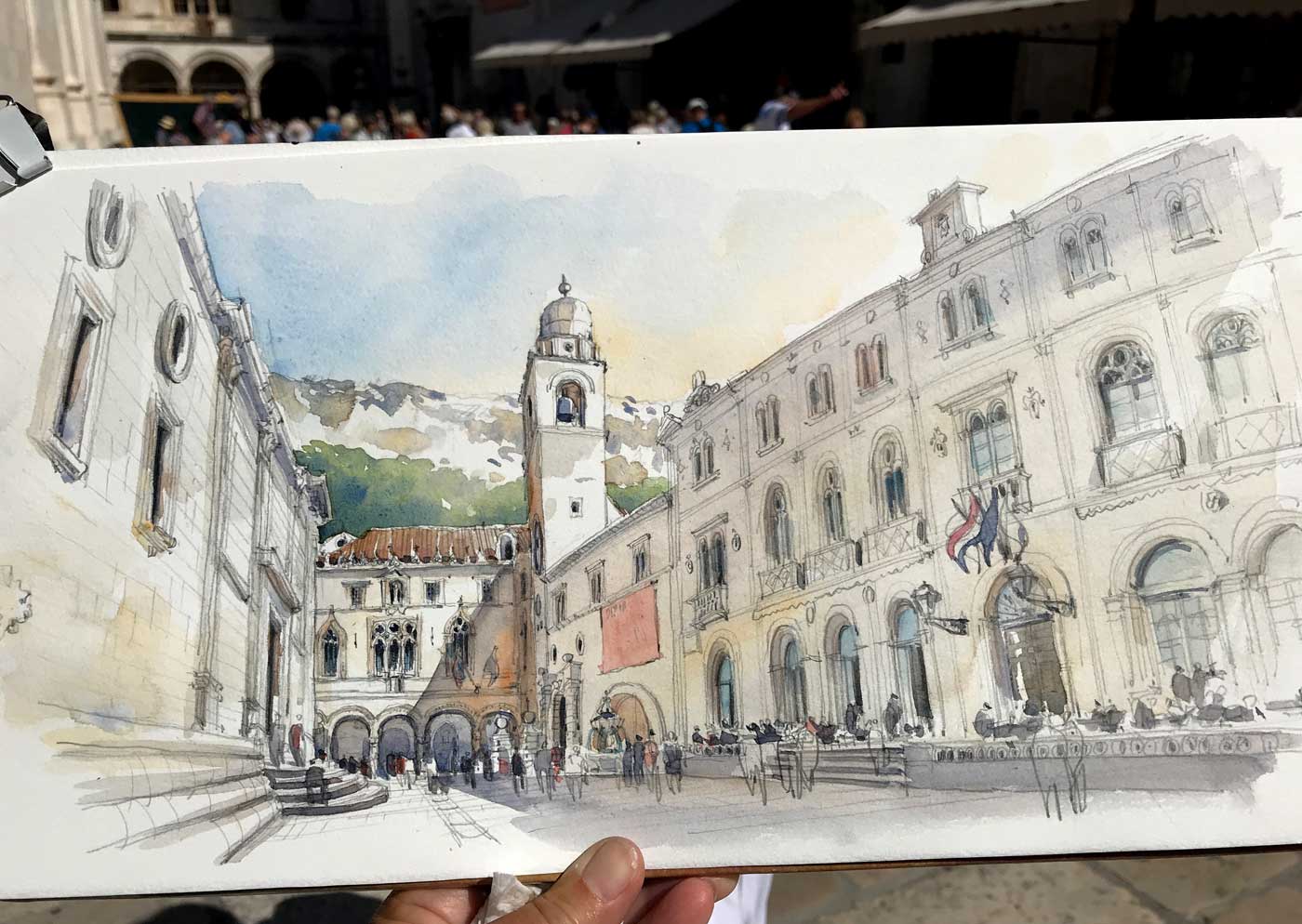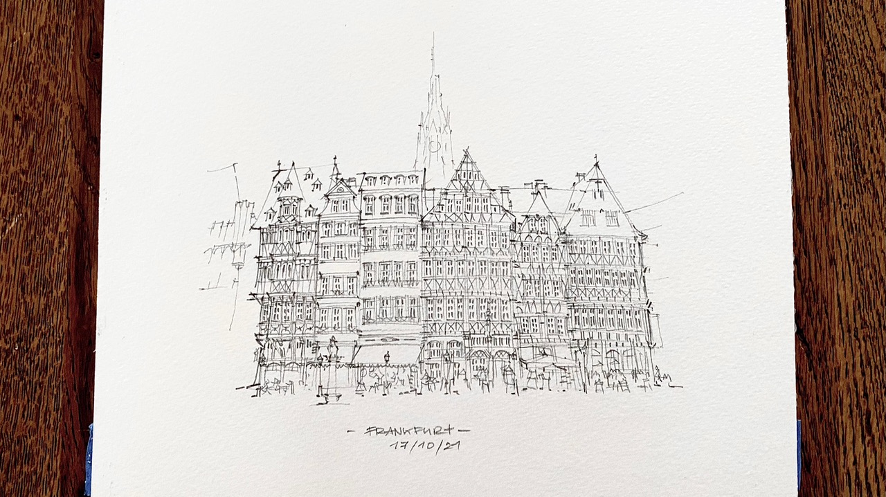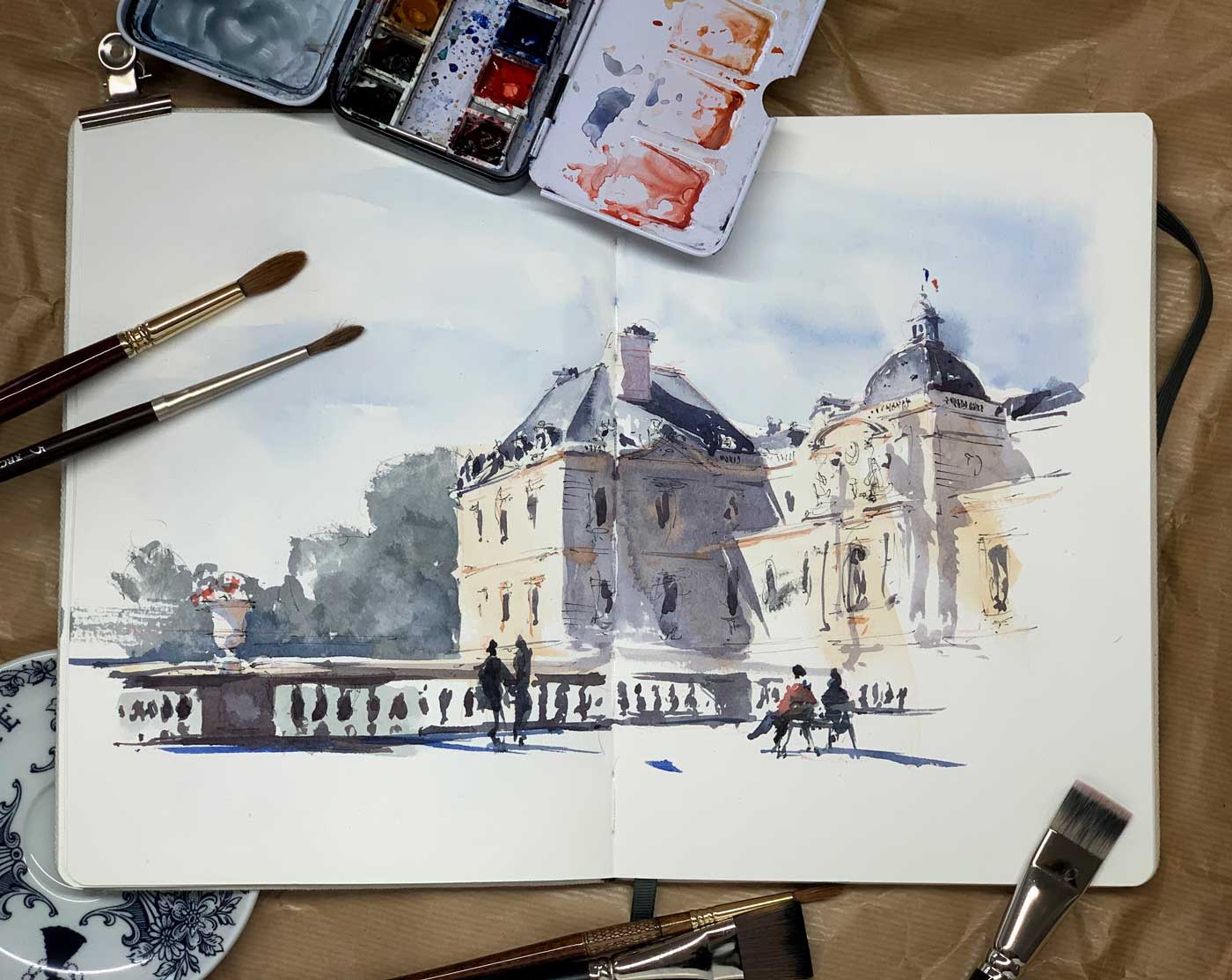 Lerne die drei einfachen Schritte, um die Grundlage für jede Architekturskizze in Perspektive und Aquarell zu schaffen.