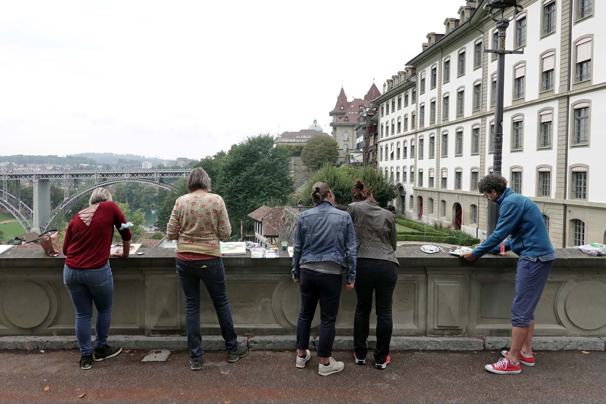 In first changeable and in the end wonderful weather some 150 urban sketchers made their way to Bern. During the three days, workshops, sketchwalks, and evening meetups were held all over the old town. A big thank you to the participants, workshop leaders, helpers and all our sponsors. You have all contributed to three unforgettable days in Bern.