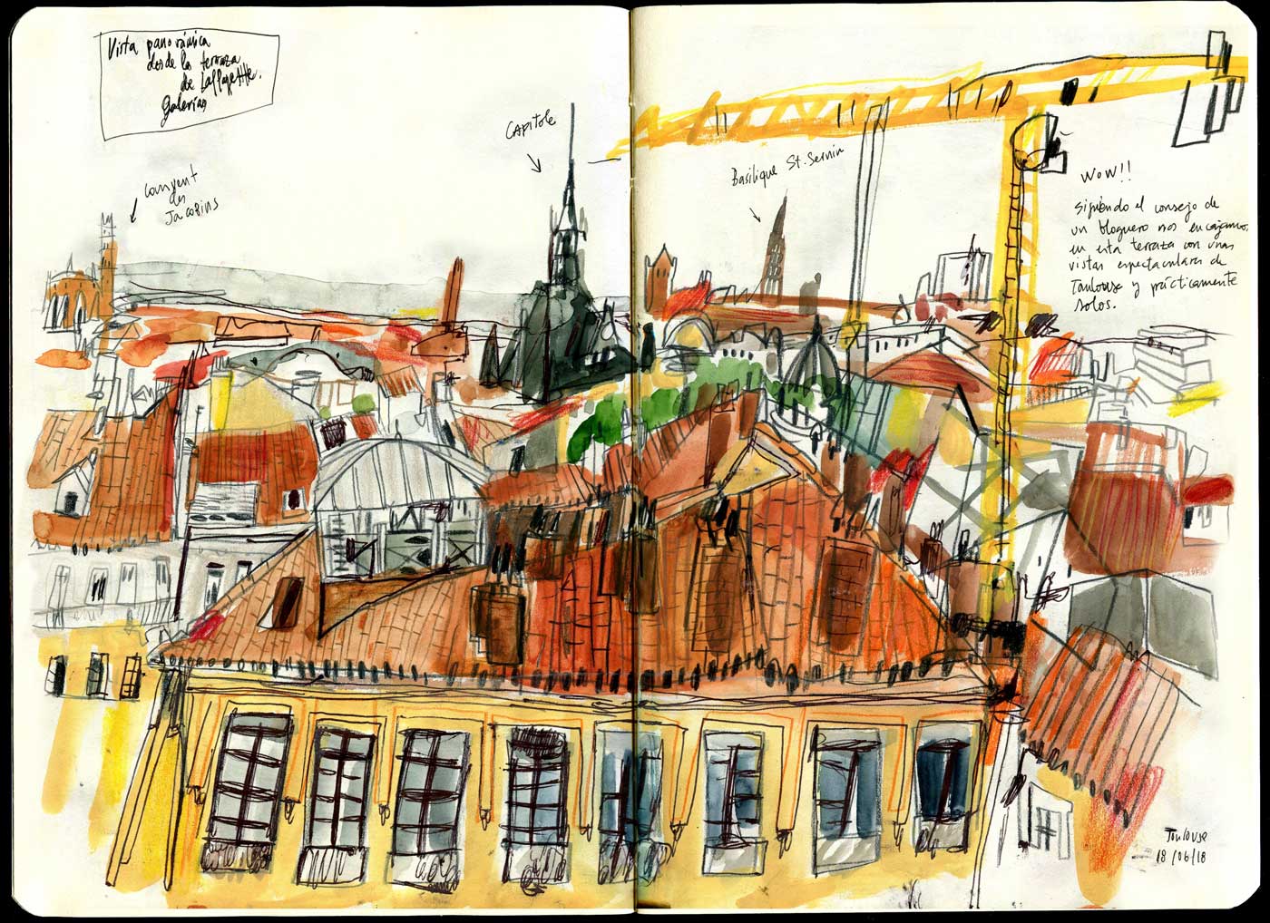 She has participated in national and international exhibitions related to travel sketchbook and graphic diary, which is her main interest. She has been instructor in sketching workshops for Urban Sketchers International Symposiums in Santo Domingo (2012) Barcelona (2013) Singapour (2015) and Porto (2018). She also has lead many sketching workshops in other European cities as Lisbon, Zaragoza, Newbury, Málaga, Rotterdam, Galway or Barcelona.