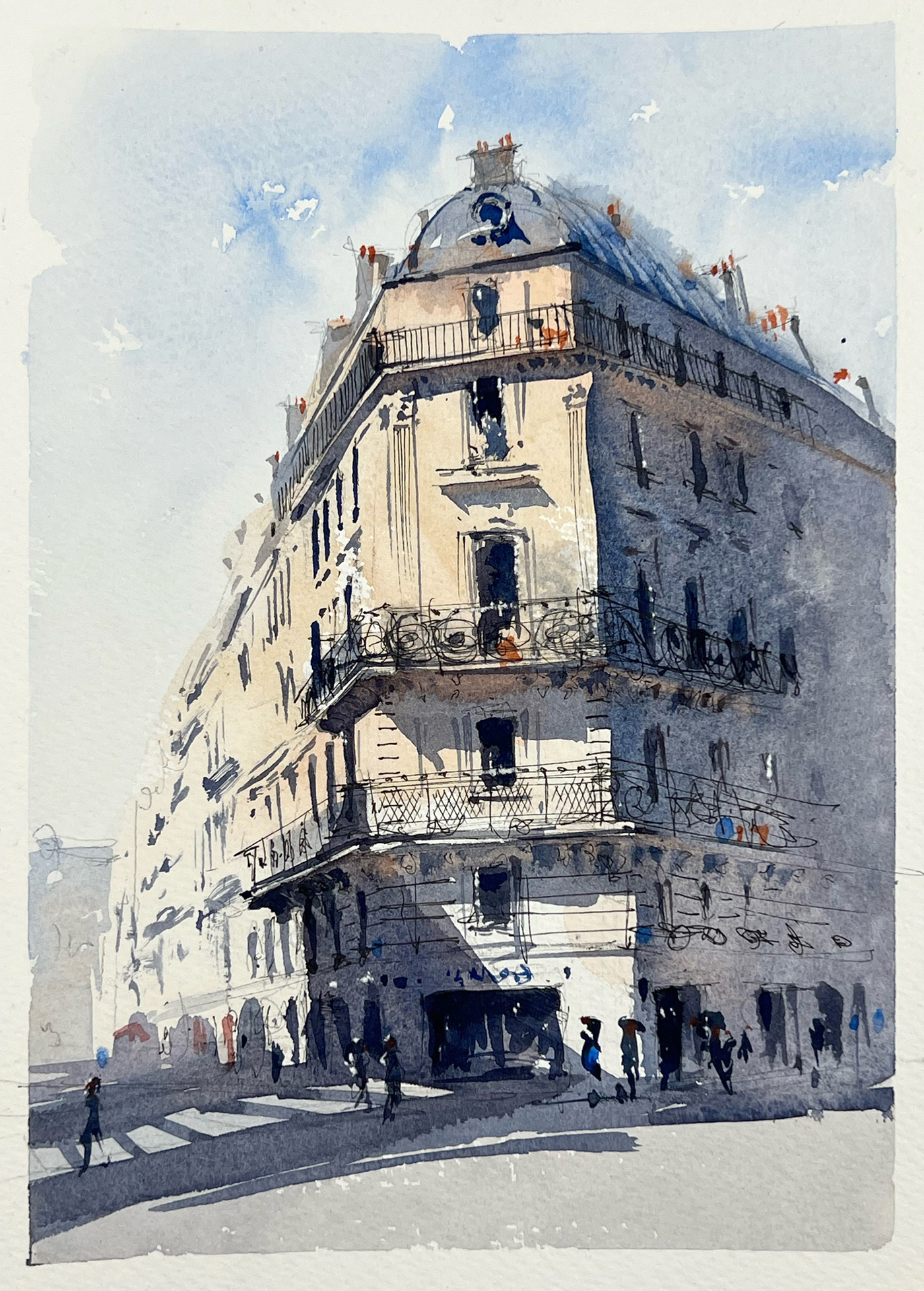 Alex Hillkurtz was born in England and grew up in California, where he established himself as a successful storyboard artist in Hollywood. Currently living in Paris, Alex is now a professional watercolor artist. He enjoys discovering aspects of the city that painting uniquely allows, using the language of cinema to inform his work.