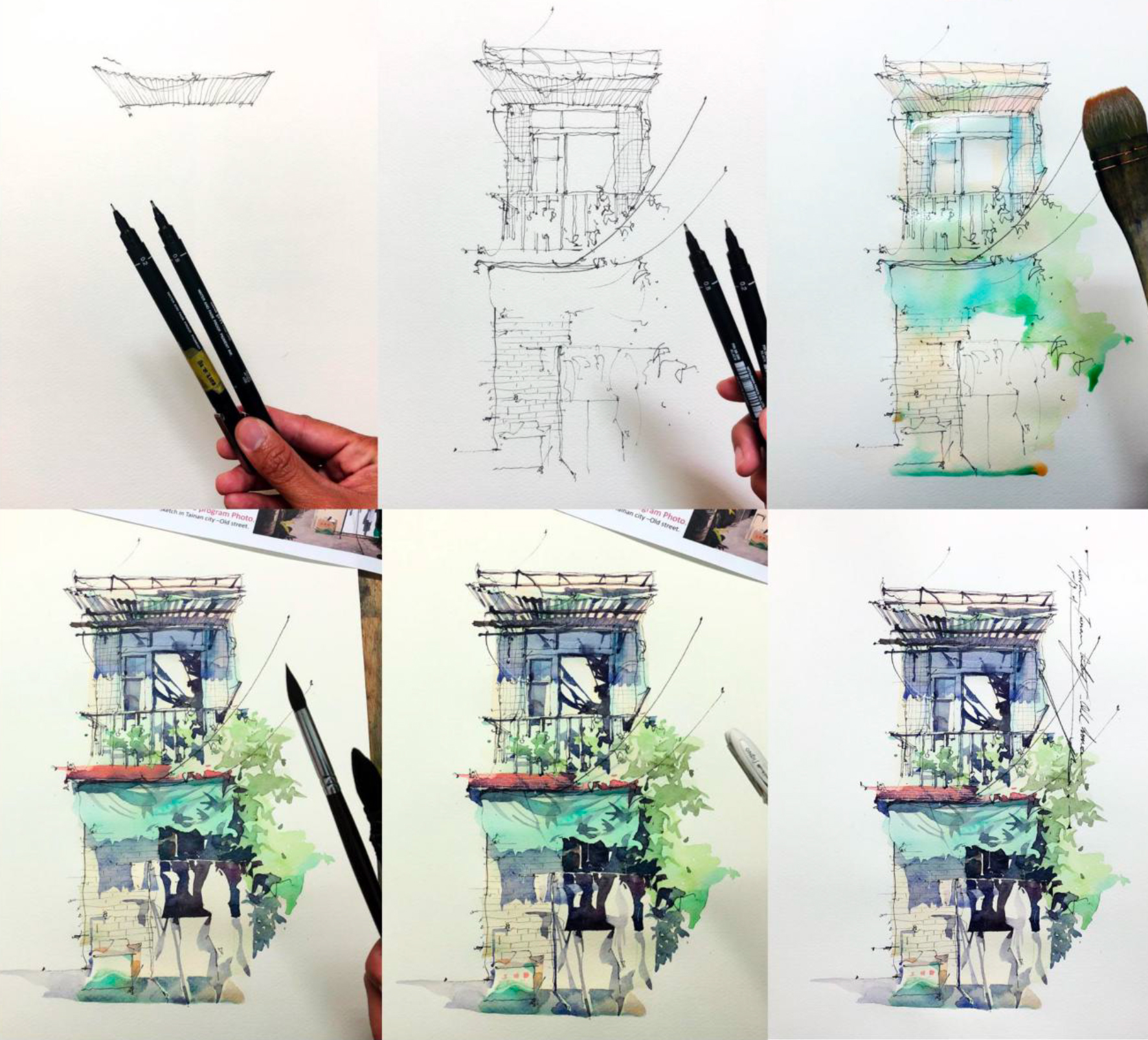 Ich bin Jie, ein Urban Sketcher aus Taiwan. Nach meinem Abschluss an der Universität arbeitete ich als Landschaftsgestalter. In 2015 wurde ich Mitglied der Urban Sketcher-Gruppe und arbeite derzeit als Illustrator und Dozent für Zeichnungen auf Reisen in Taichung City, Taiwan. Reisen inspiriert mich sehr. Ich besuche gerne verschiedene Städte und halte die Geschichten der Stadt fest, indem ich historische Gebäude oder Naturlandschaften vor Ort zeichne. Aquarellfarben und Marker sind meine bevorzugten Medien. In meinen Skizzen verwende ich gerne rhythmische Linien und lasse einige leere Stellen, um den Blick des Betrachters auf den Mittelpunkt meines Interesses zu lenken.