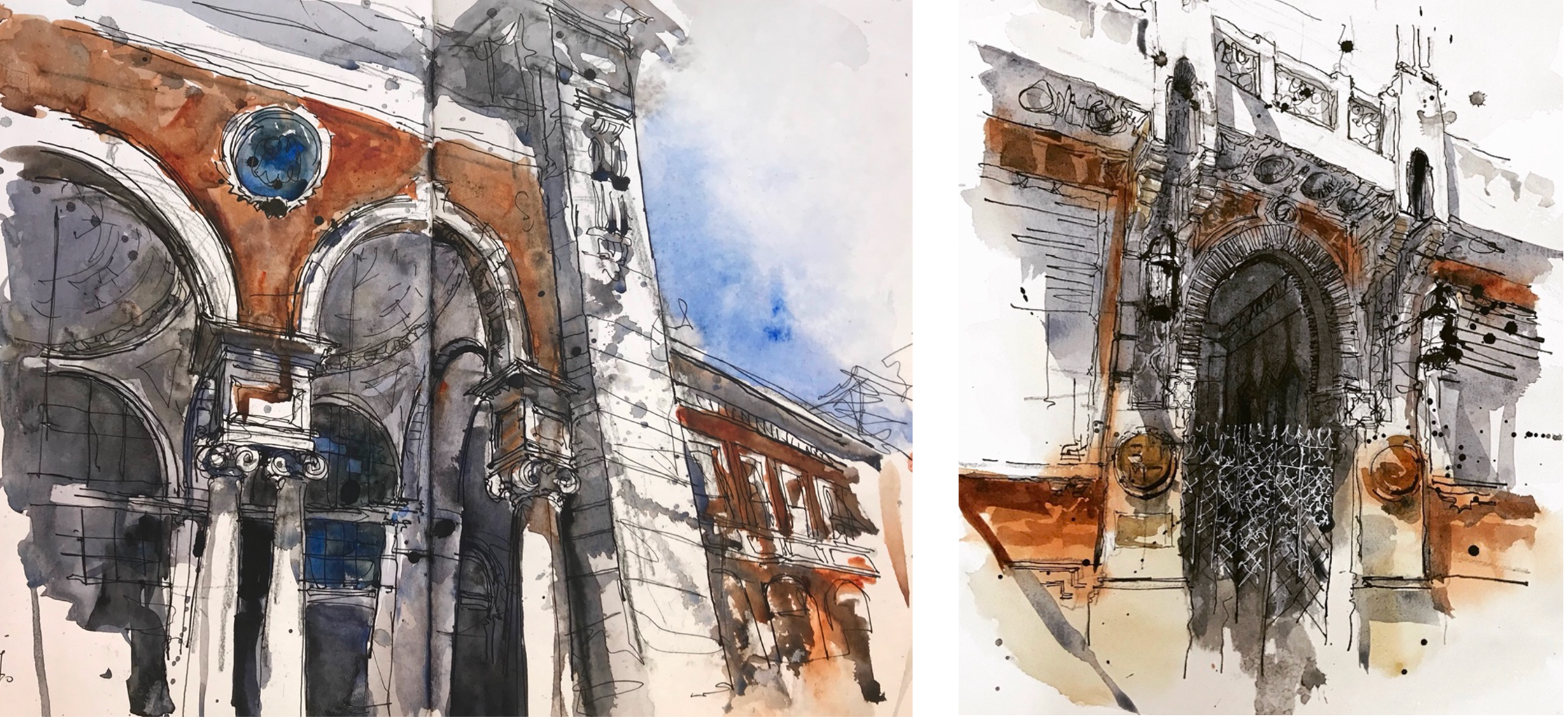 Capturer une scène complexe, en particulier dans le cas d'une architecture classique, et sans se laisser submerger par les détails, les ornements et certains éléments de style compliqués! Il existe de nombreuses stratégies pour simplifier ce type de scènes afin de capturer l’instant, raconter une histoire et révéler le sens du lieu sans trop s’attarder sur les détails: l'une d’entre elles consiste à simplifier la scène avec des ombres et non avec des lignes. La lumière et les ombres sont nos principaux acteurs.