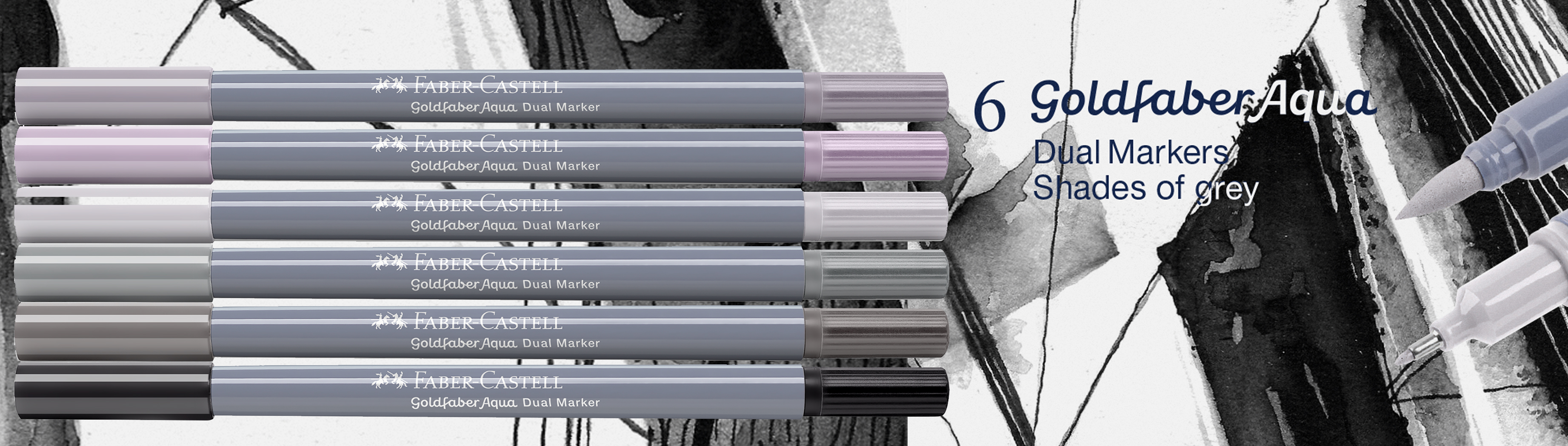 Goldfaber Aqua Dual Marker, wallet of 6, Shades of grey