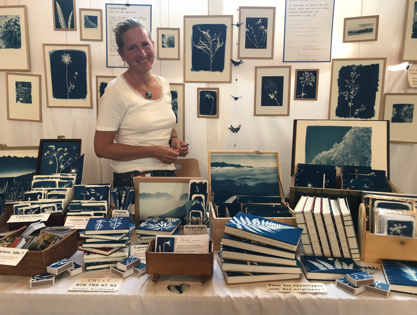 Irène will have a stand at the symposium where she will be offering her artist's notebooks, sketchbooks and leporellos, in different sizes and orientations, and on a variety of paper weights. For the covers of her notebooks, Irène favors her original cyanotype prints, as well as Japanese fabrics, topographical maps and other handmade papers. There's something for everyone!