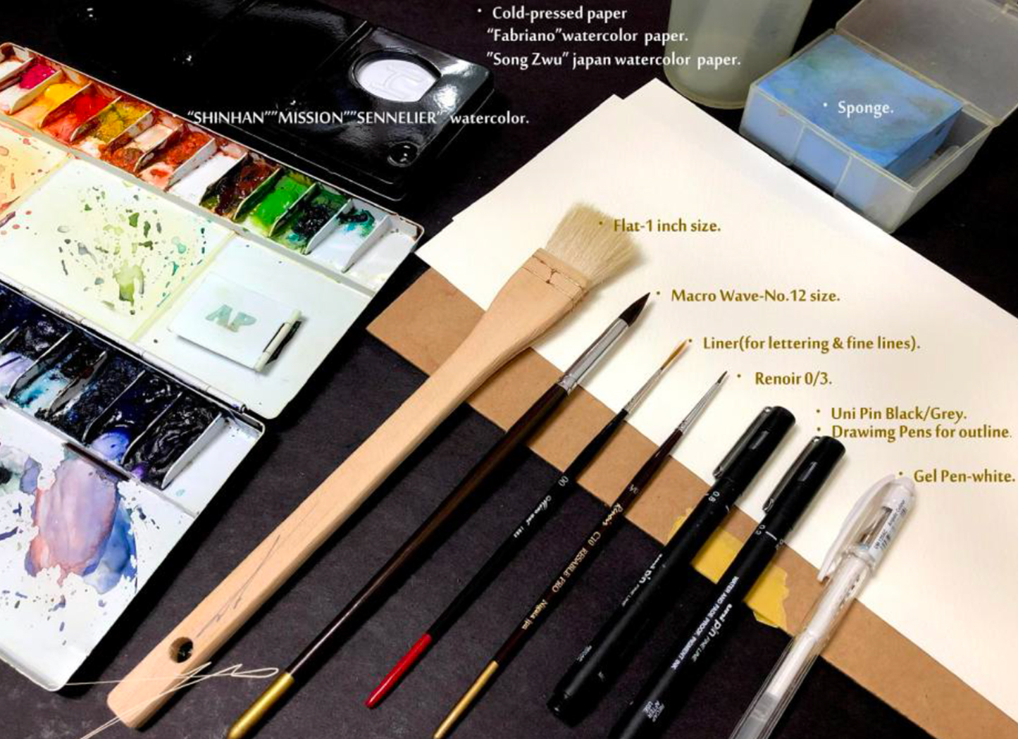- Waterproof fineliner (black, gray, ochre)