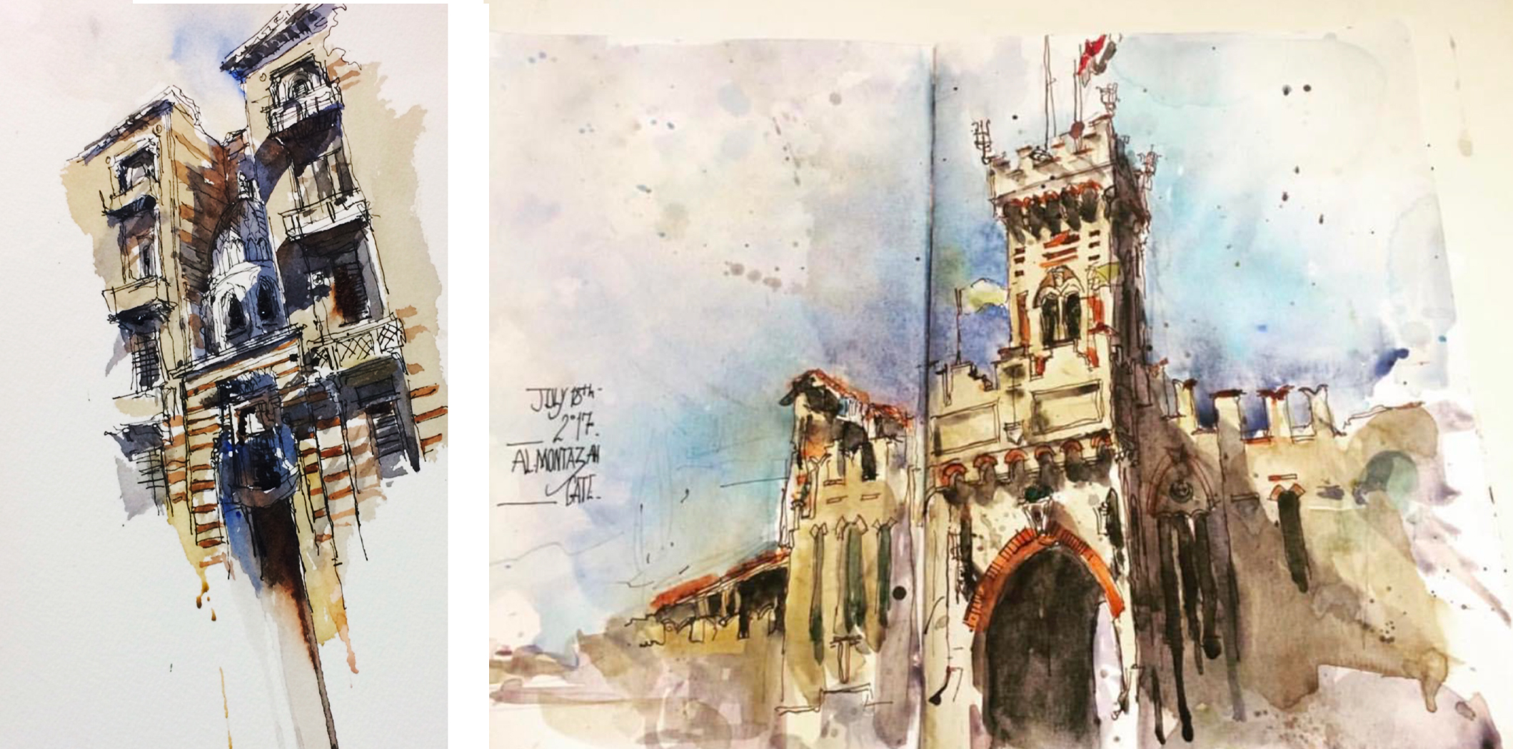Reham Ali is an international urban sketcher, artist and designer. Her work was internationally featured in many articles and interviews as well as podcasts. She has been invited several times as a keynote speaker and workshop leader for events led by a world class panel of international artists.